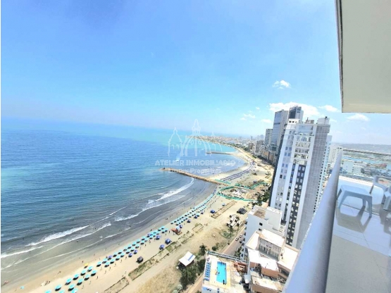 Arriendo Hermoso apartamento frente al mar, diseñado con acabados de primera calidad con vista panorámica al centro histórico de Cartagena, al mar caribe y a la bahia de Cartagena.