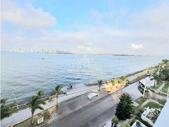 Apartamento totalmente remodelado 3 habitaciones, 2 baños, cuarto y baño del servicio, que puede ser utilizado como oficina con su baño o  cuarto auxiliar con su baño completo, cocina, bar, espacios generosos, vista directa a la bahia de Cartagena, frente al paseo peatonal y a 1 cuadra del mar caribe.